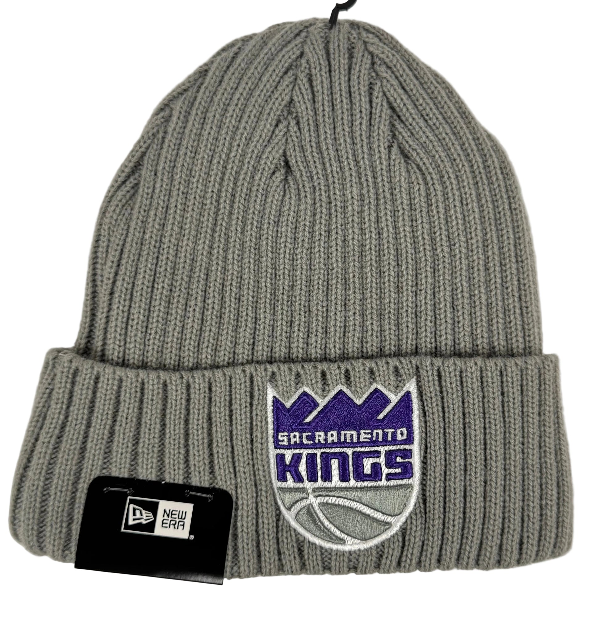 Gray beanie with Sacramento Kings logo and New Era label