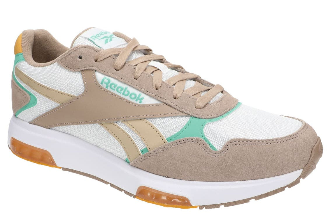 Available in an elegant White/Earth/Aqua colorway, this sneaker transitions effortlessly from casual wear to lifestyle settings.