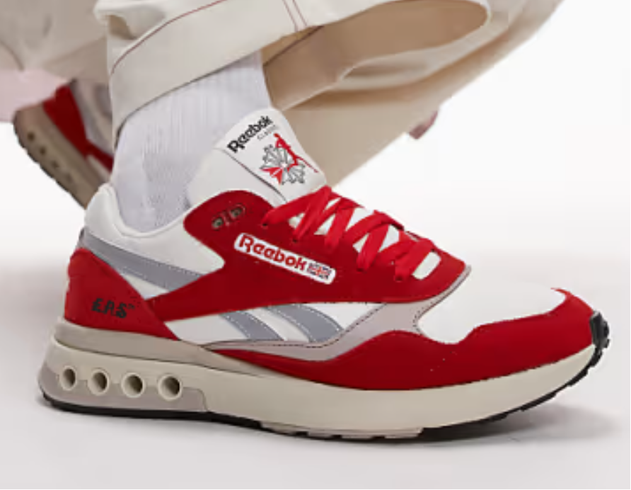 ERS World Reebok Red and white sneaker with 'Reebok' branding