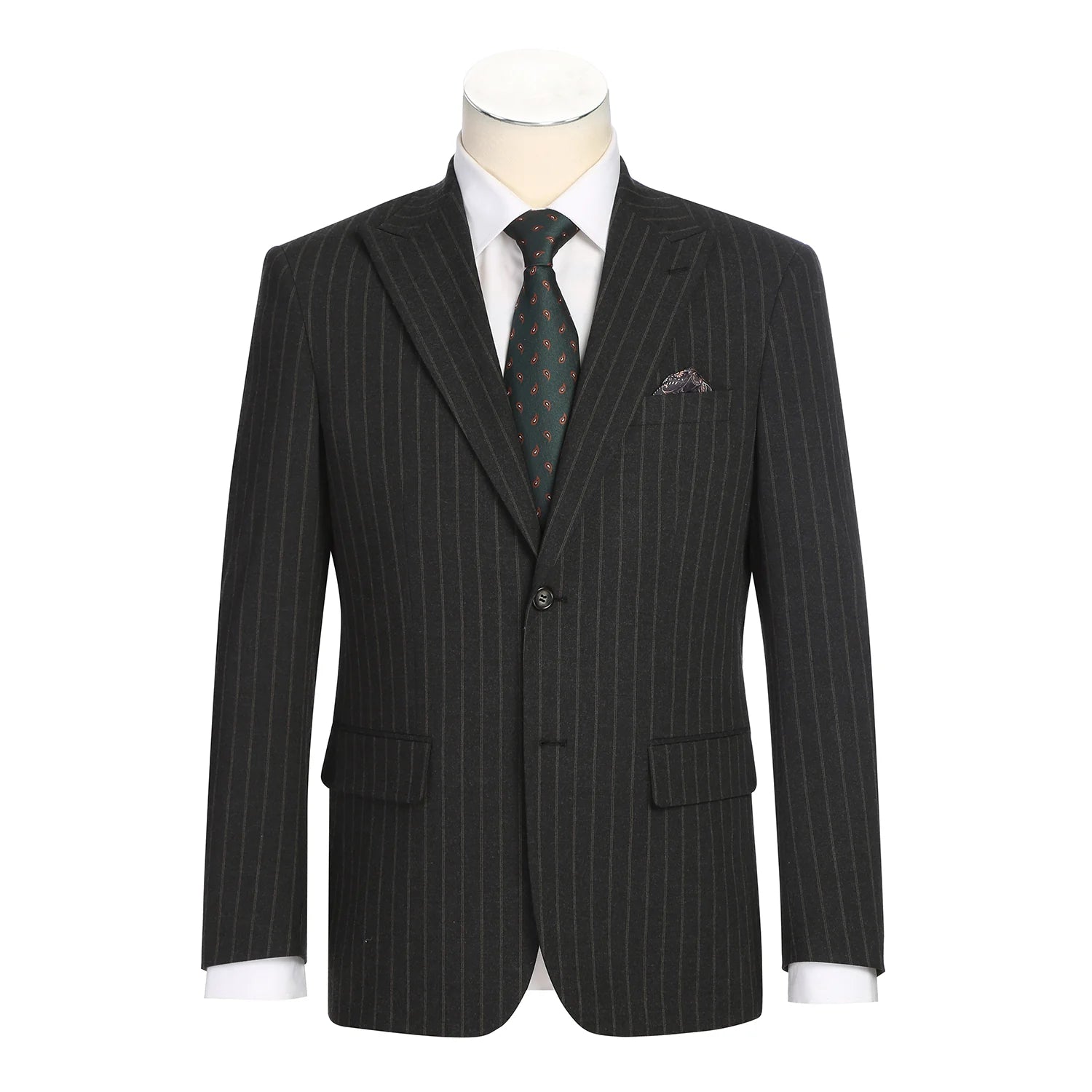 This sharp single-breasted suit commands attention with its modern slim silhouette and refined tailoring.